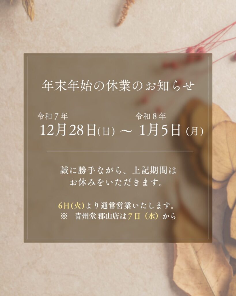 年末年始のお休みを下記の通りとさせていただきます。