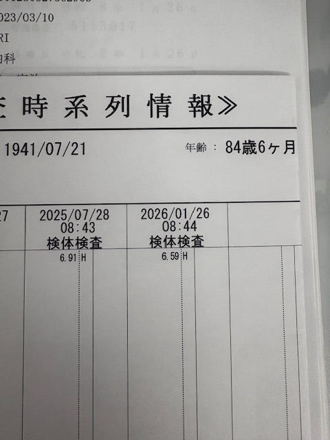 🔶結果 ①夜間のトイレ0回か1回まで改善。②写真の通り1/26の検査でPSA6.59で、昨年7/28より0.32下がった。