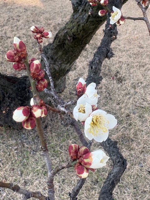今朝は大変良い天気で、春はもうすぐかなぁと思い、福島市内の公園の春を確認しに行きました(因みに2023年2/18、2024年2/1、2025年2/26に同じ場所の三種類の梅を観賞しています)。