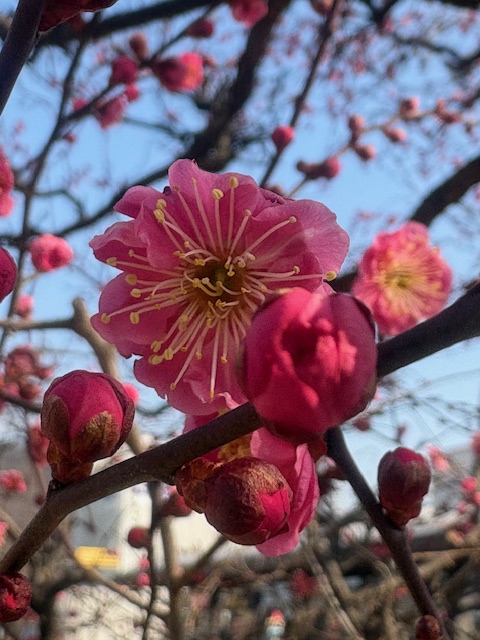 写真の通り三種類三色の梅を観賞しました。丁寧に詳しく観察・鑑賞して、例年とは違い懸命に各角度から撮影をした40枚位の写真からこの数枚を皆さんに選んだのでご鑑賞ください!